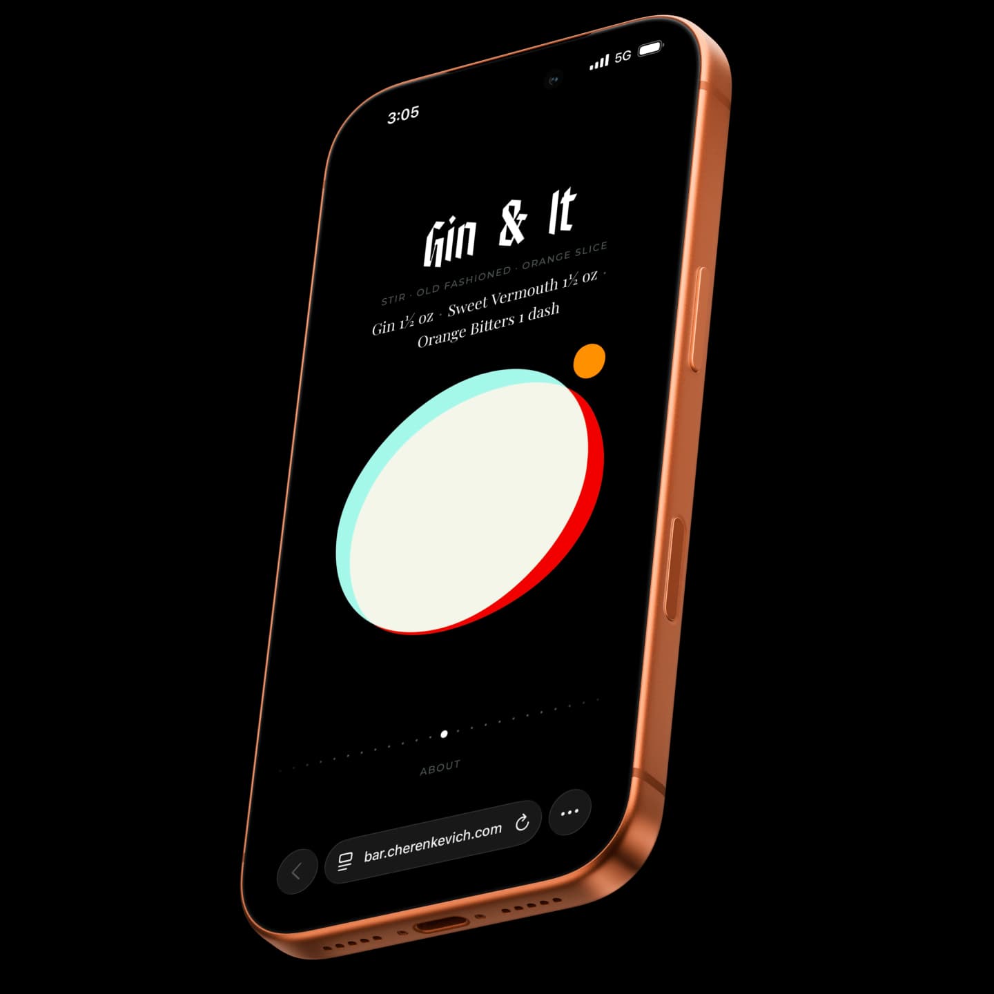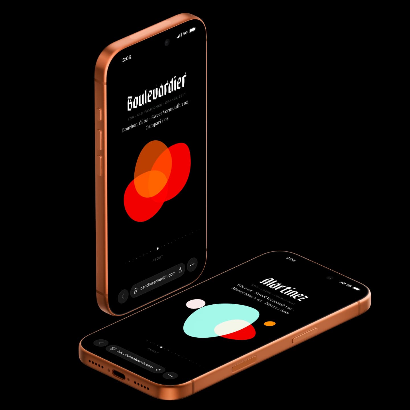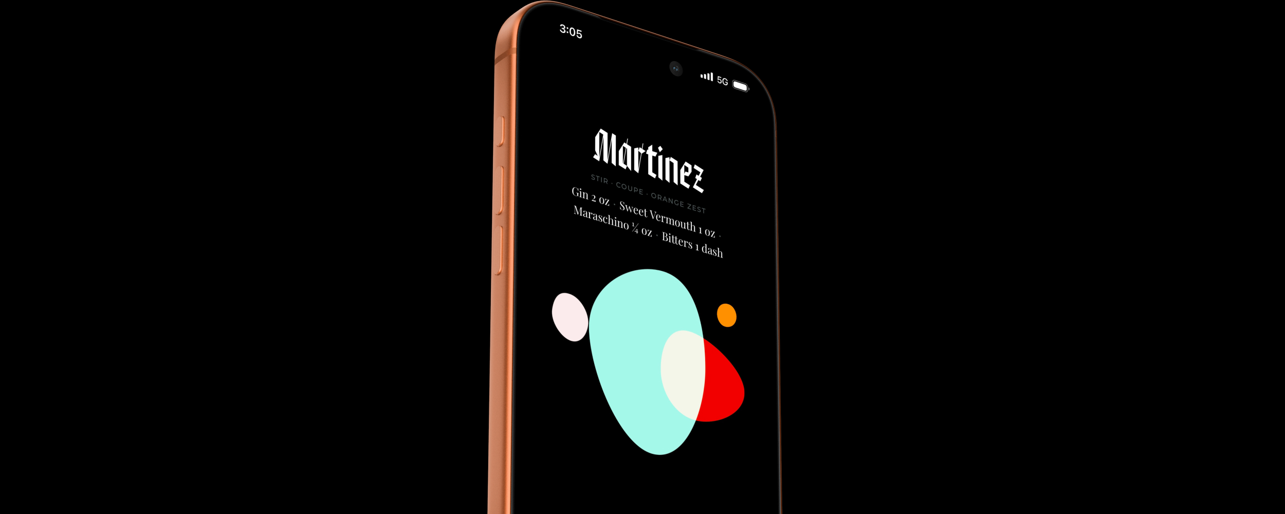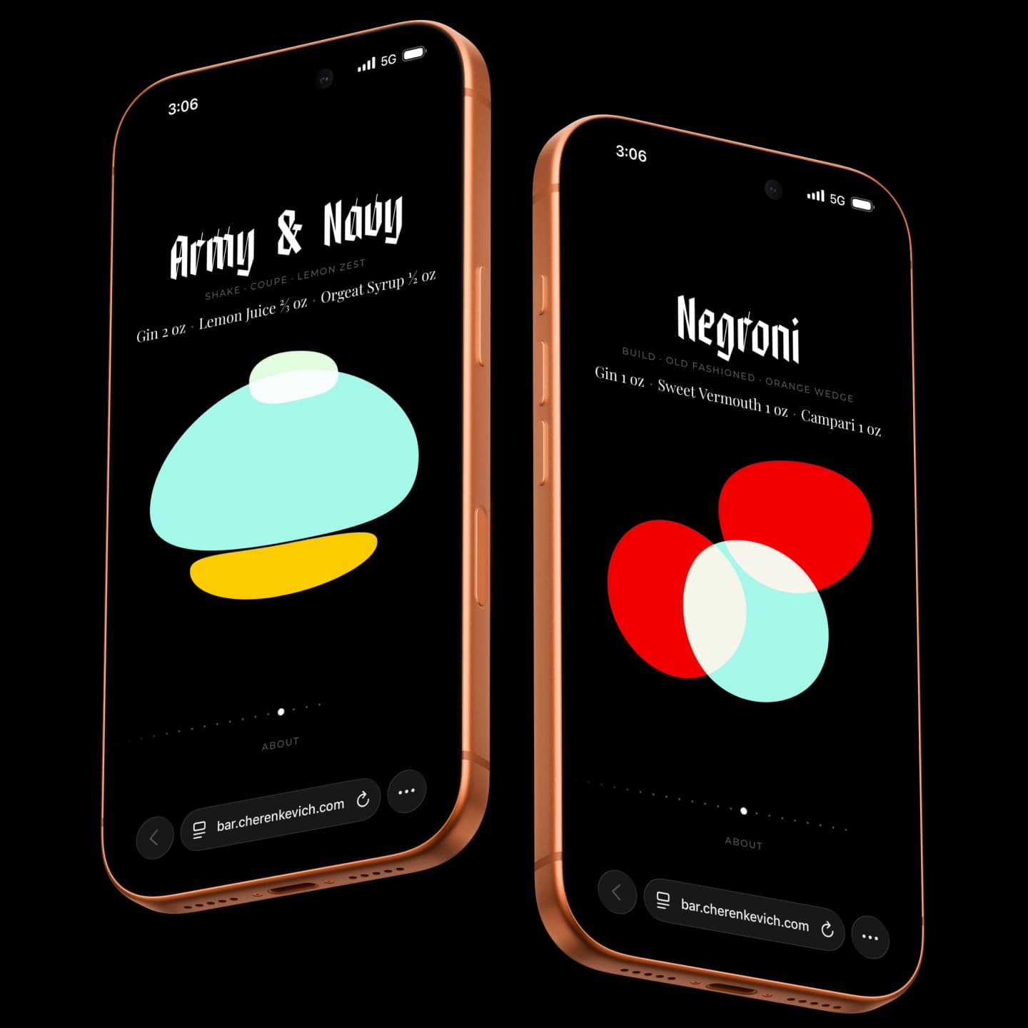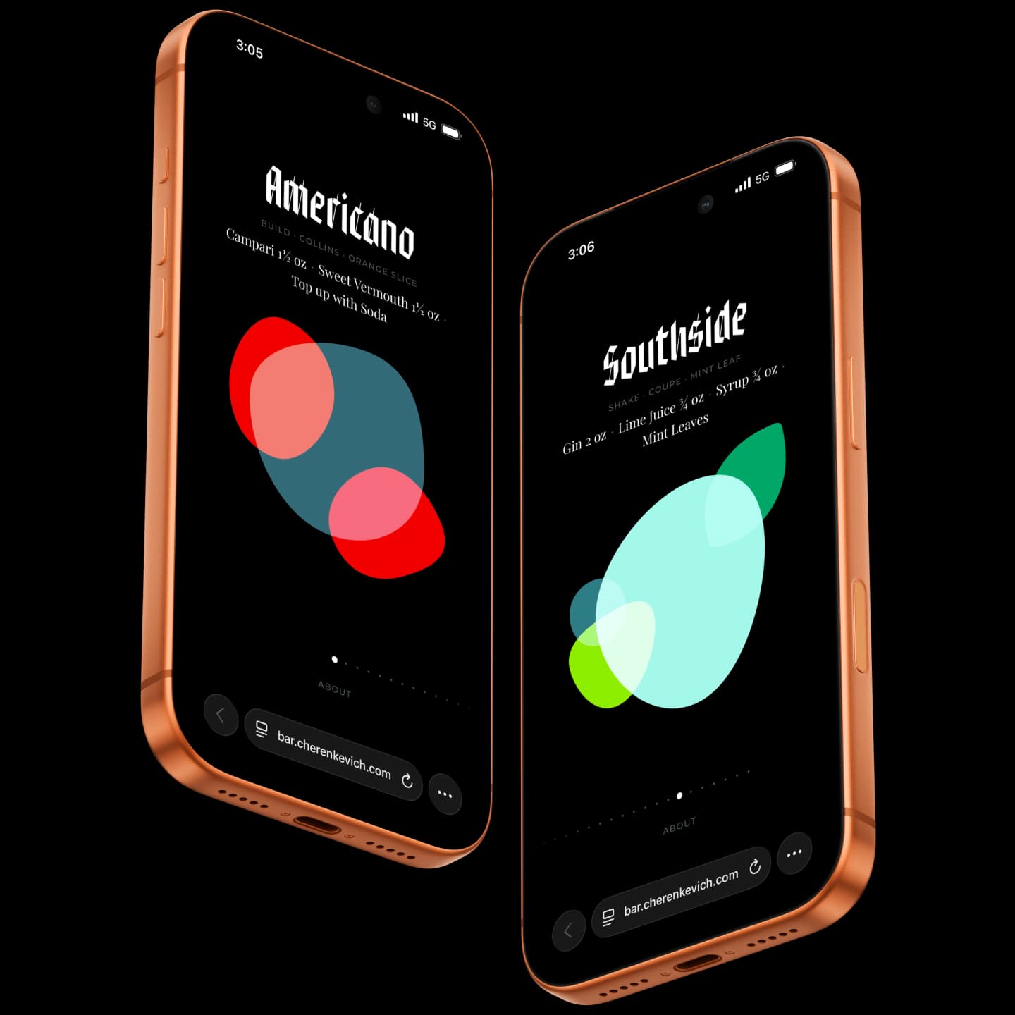 A concept for a cocktail bar menu application. Art Director, Designer & Developer, 2017