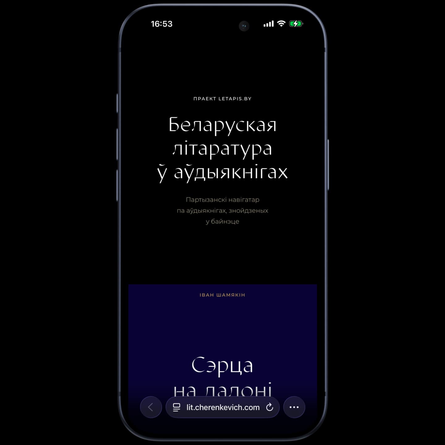 A guerrilla-style guide to audiobooks of Belarusian literature. Art Director, Designer & Developer, 2019