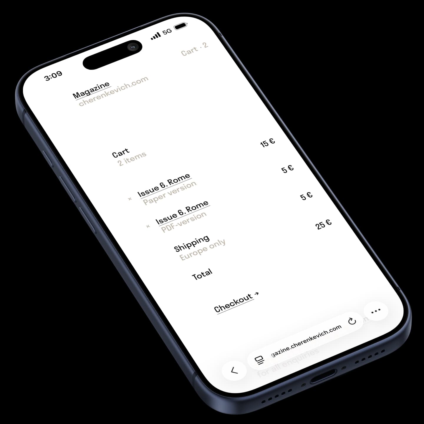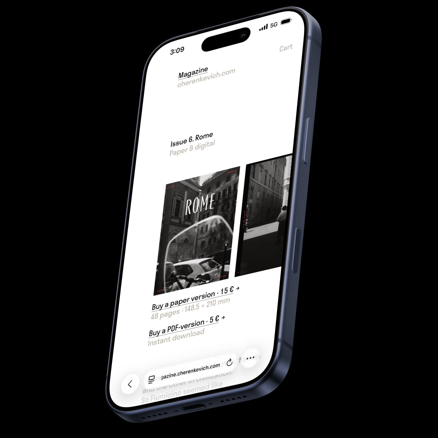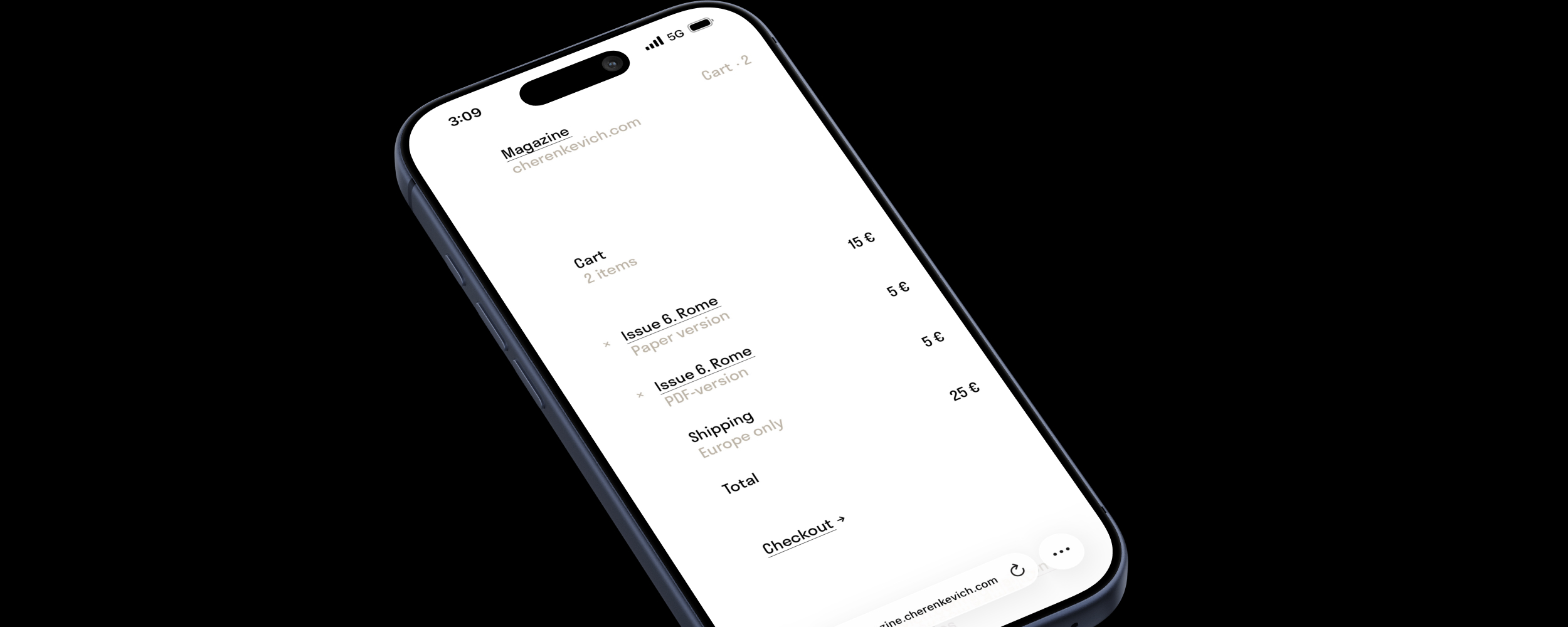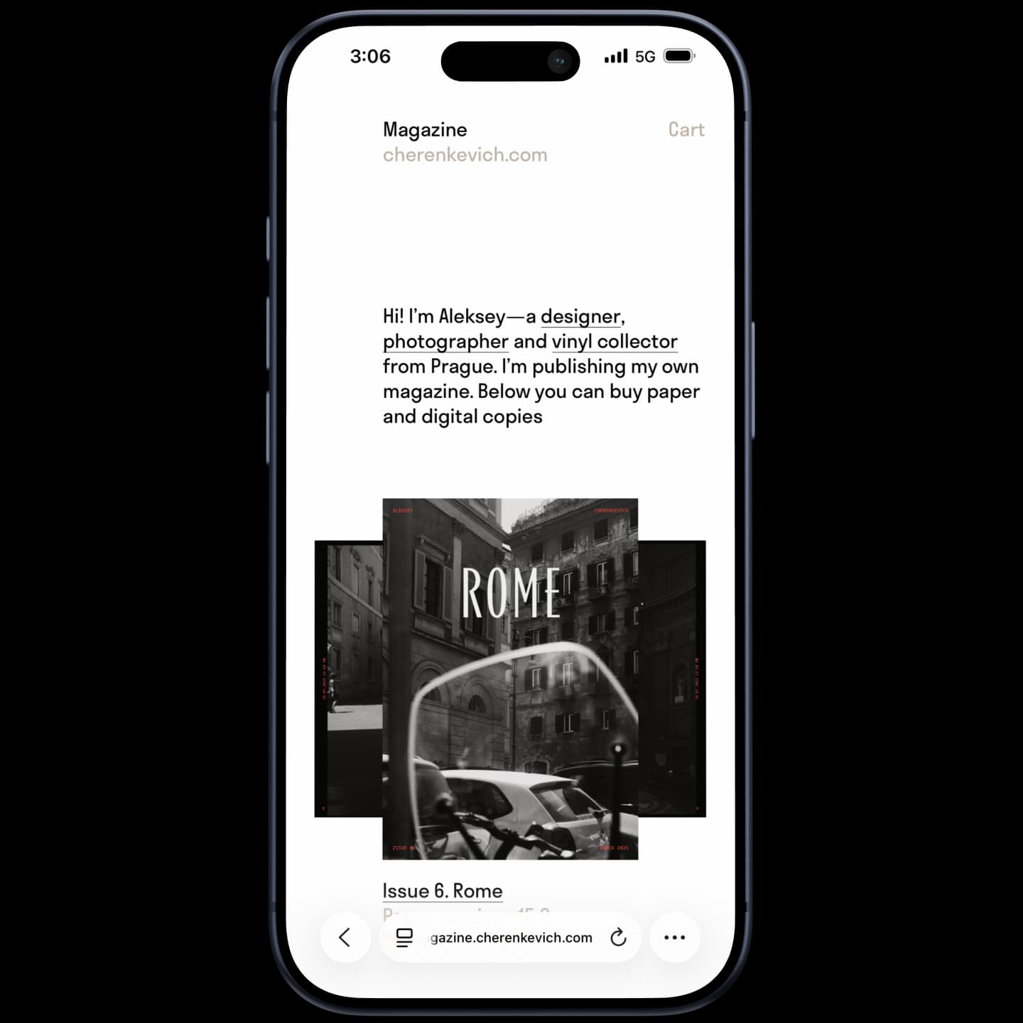 An online shop for my photo zines — limited editions capturing the spirit of different cities through photography. Art Director, Designer & Developer, 2024