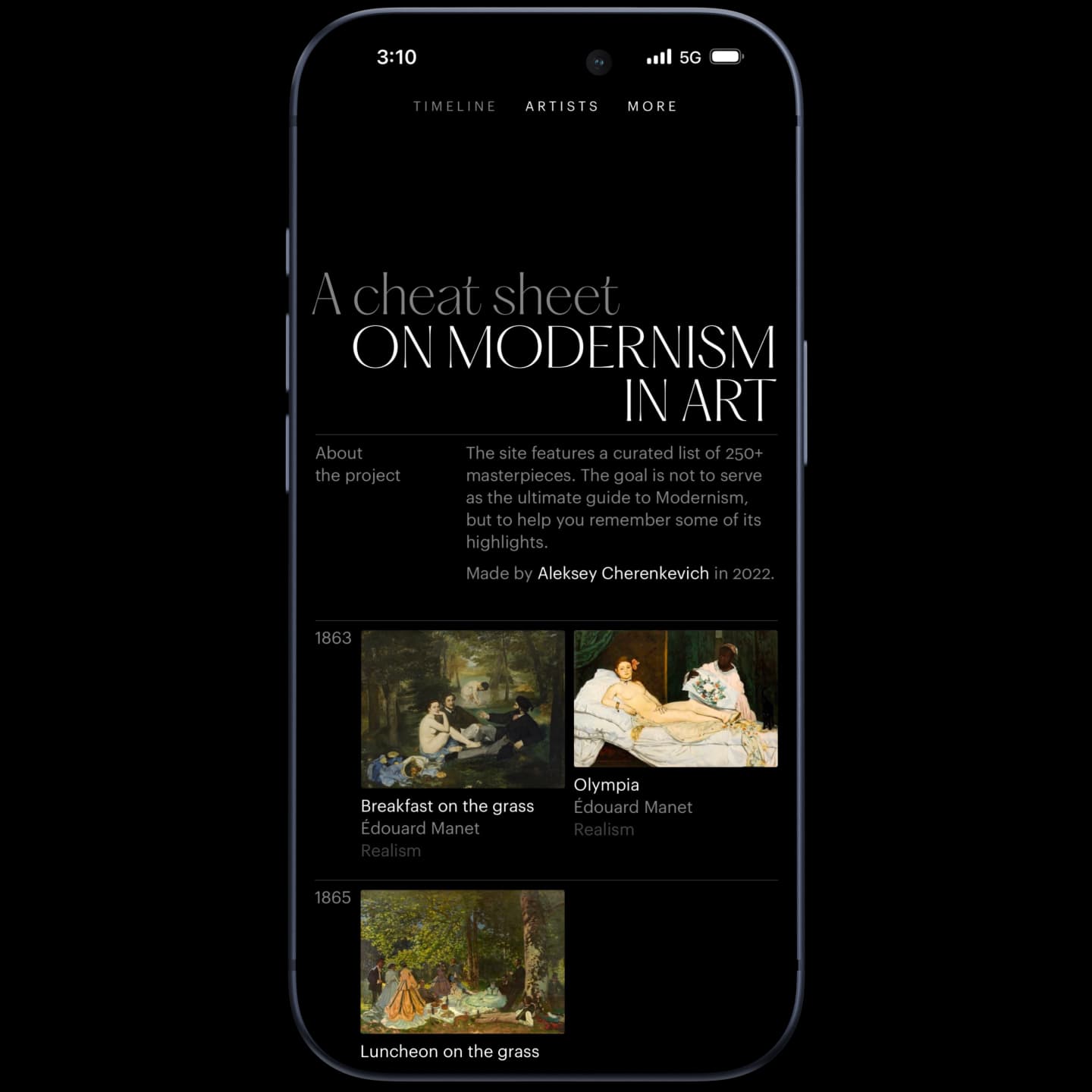 A cheat sheet on Modernism in visual art. Art Director, Designer & Developer, 2022