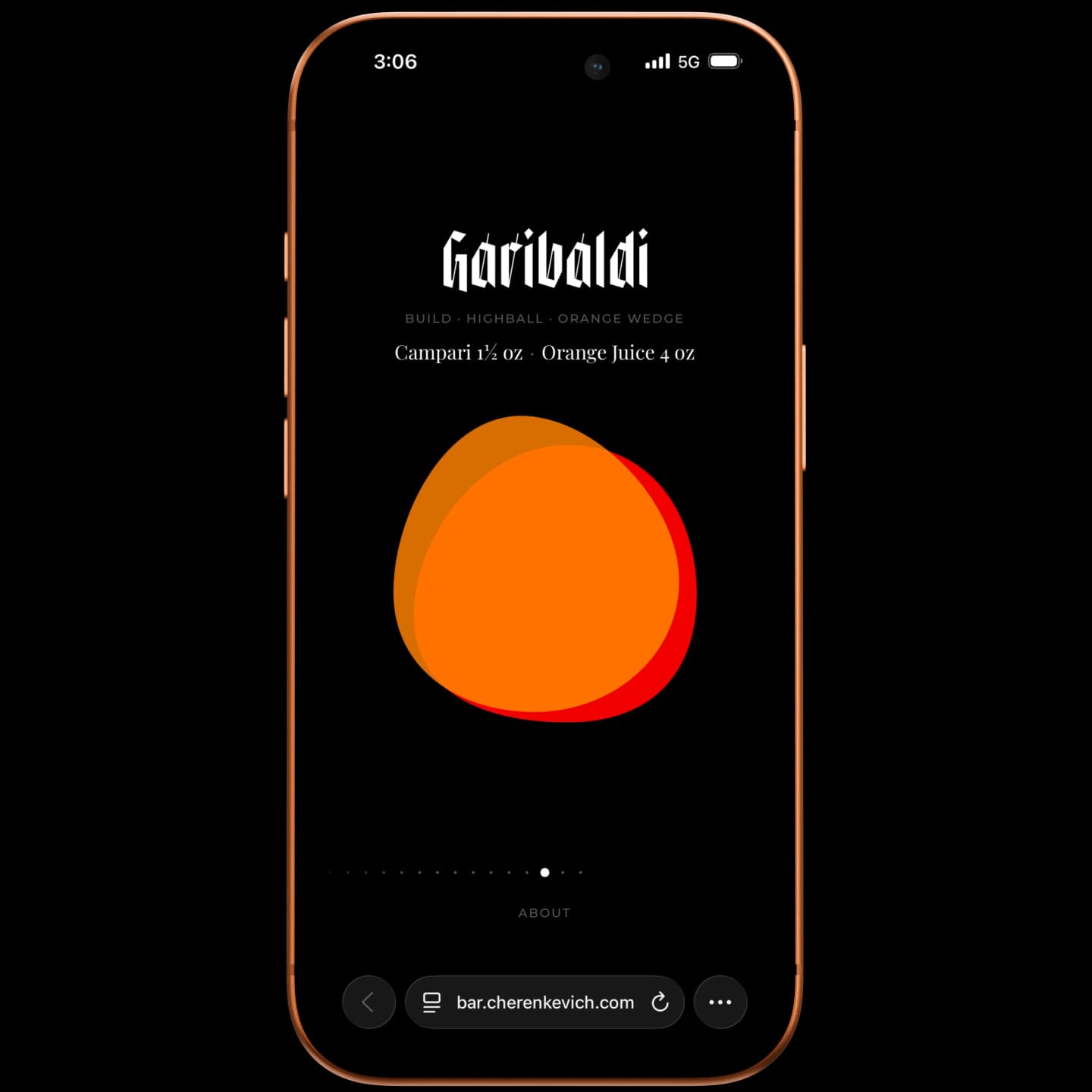 A concept for a cocktail bar menu application. Art Director, Designer & Developer, 2017